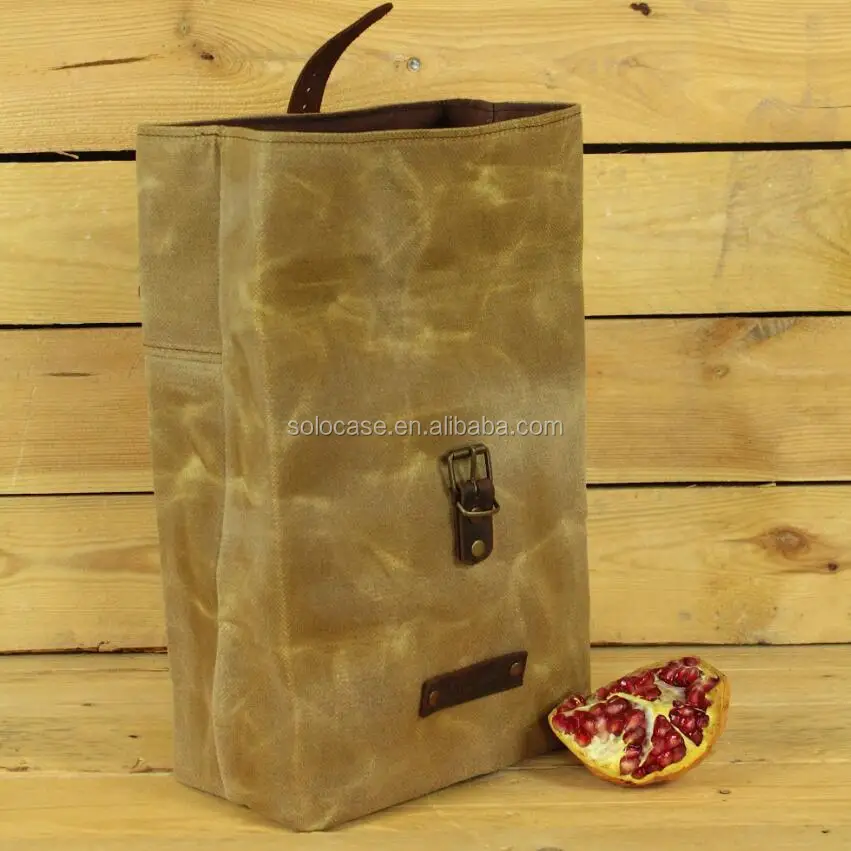 water repellent waxed canvas reusable Lunchbag with leather handle