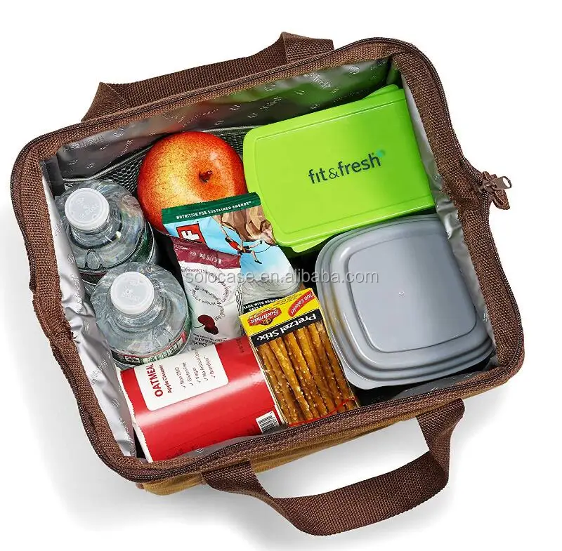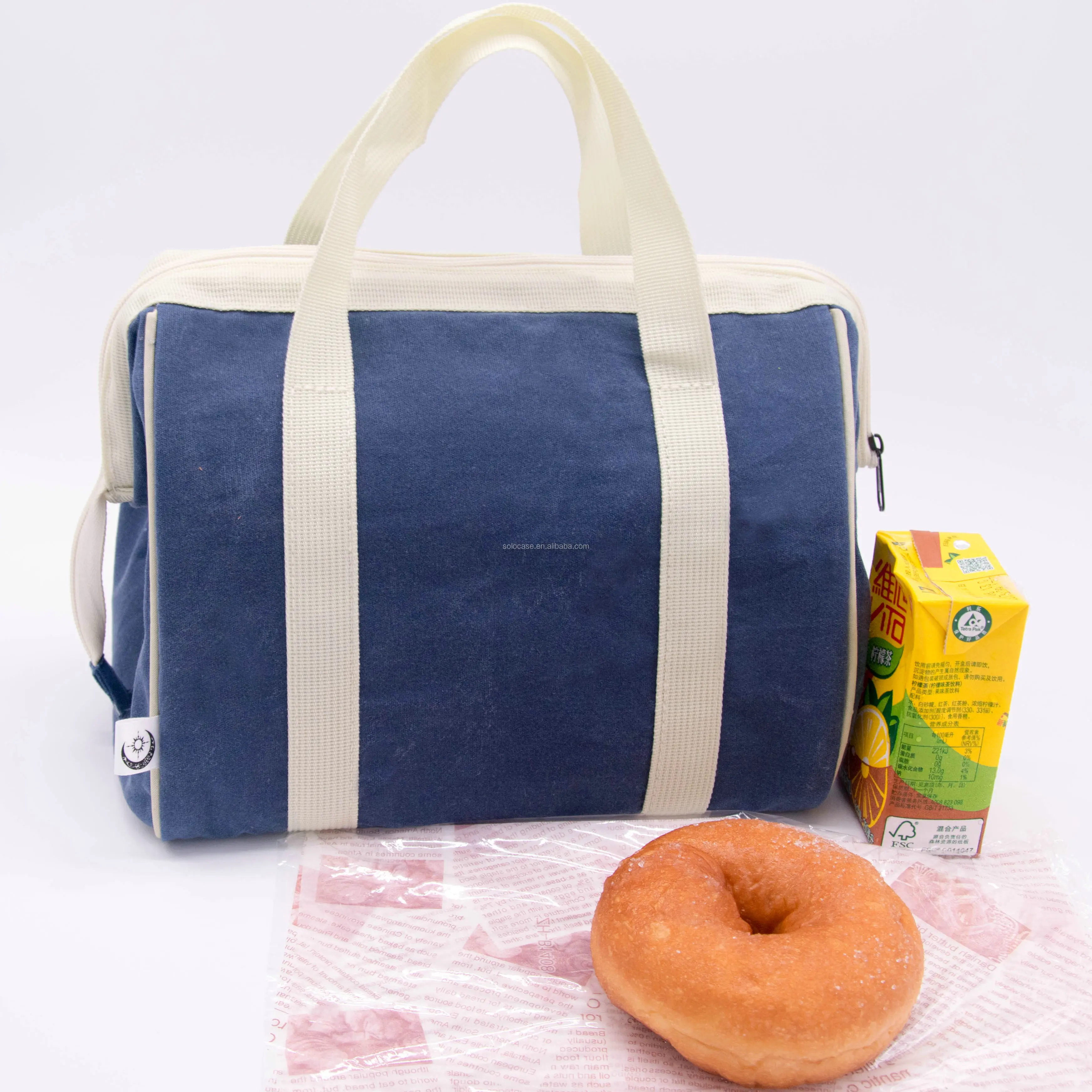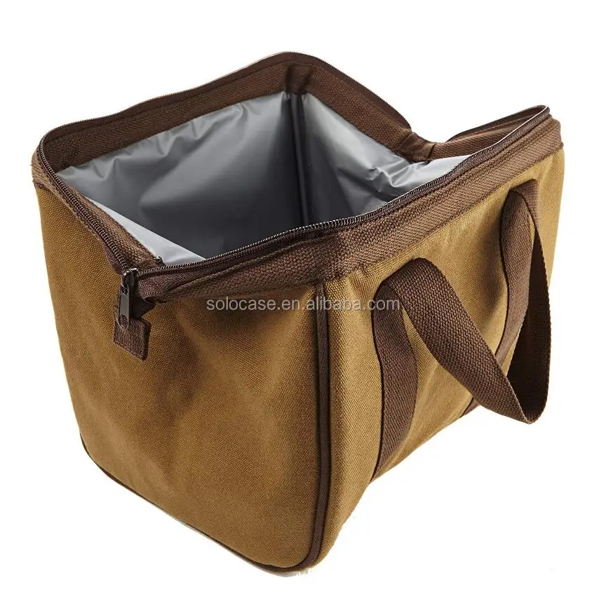 Reusable Waxed Canvas Thermal Insulated Cooler Bag with Handle for Lunches