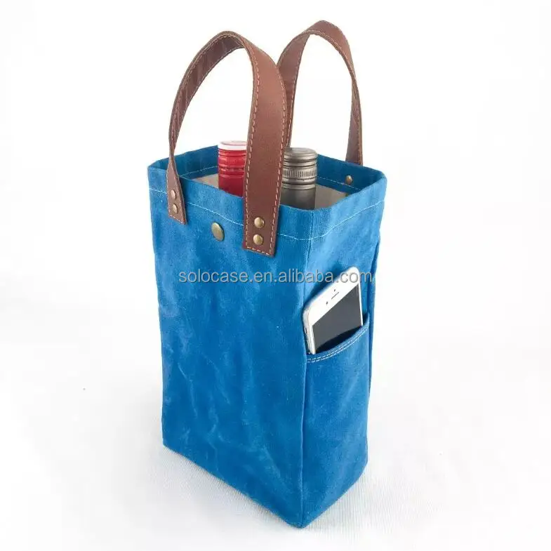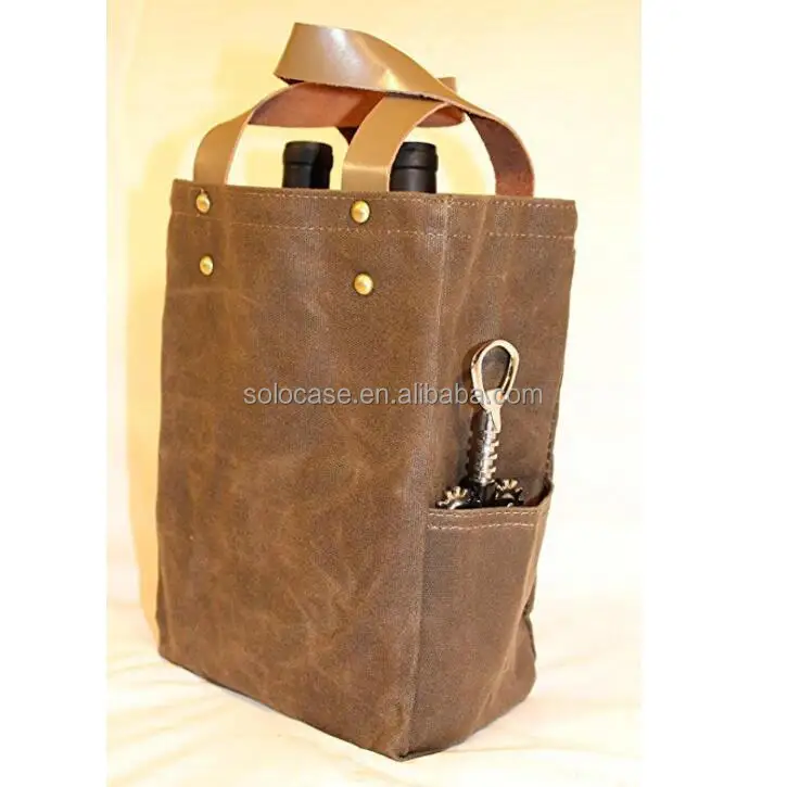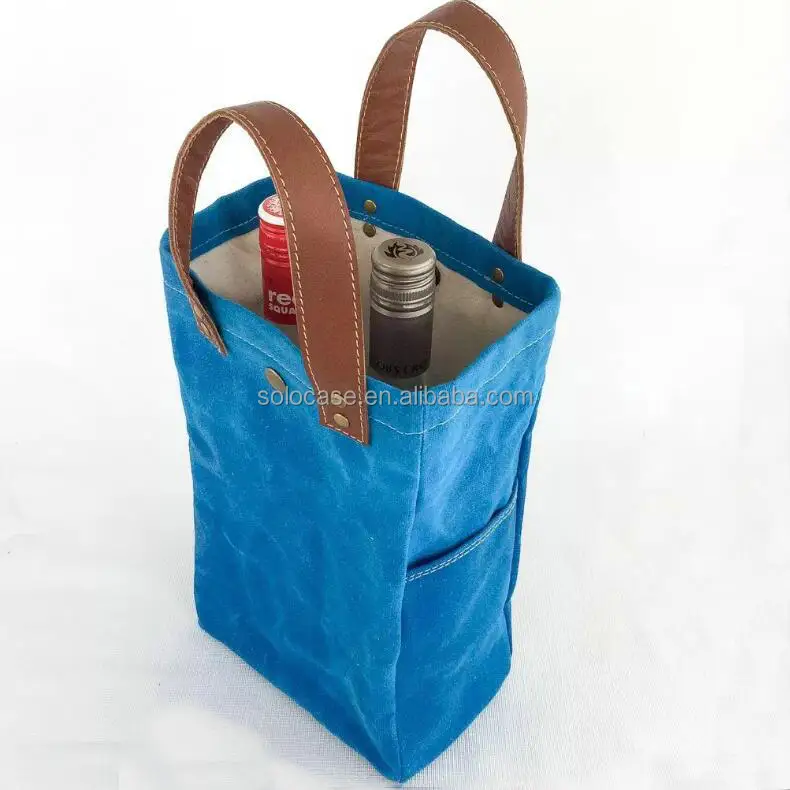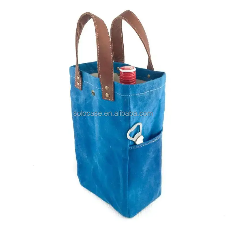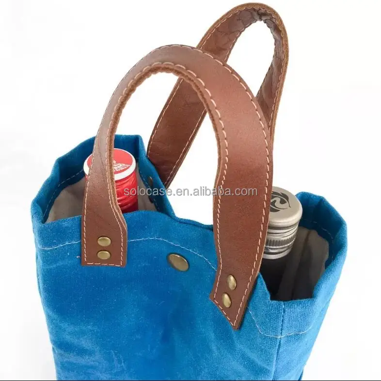 Personalized Waterproof Waxed Canvas Wine Tote Cooler Bag Customizable Wine Carrier