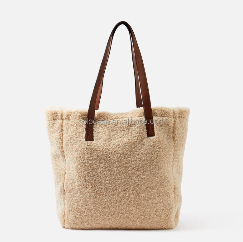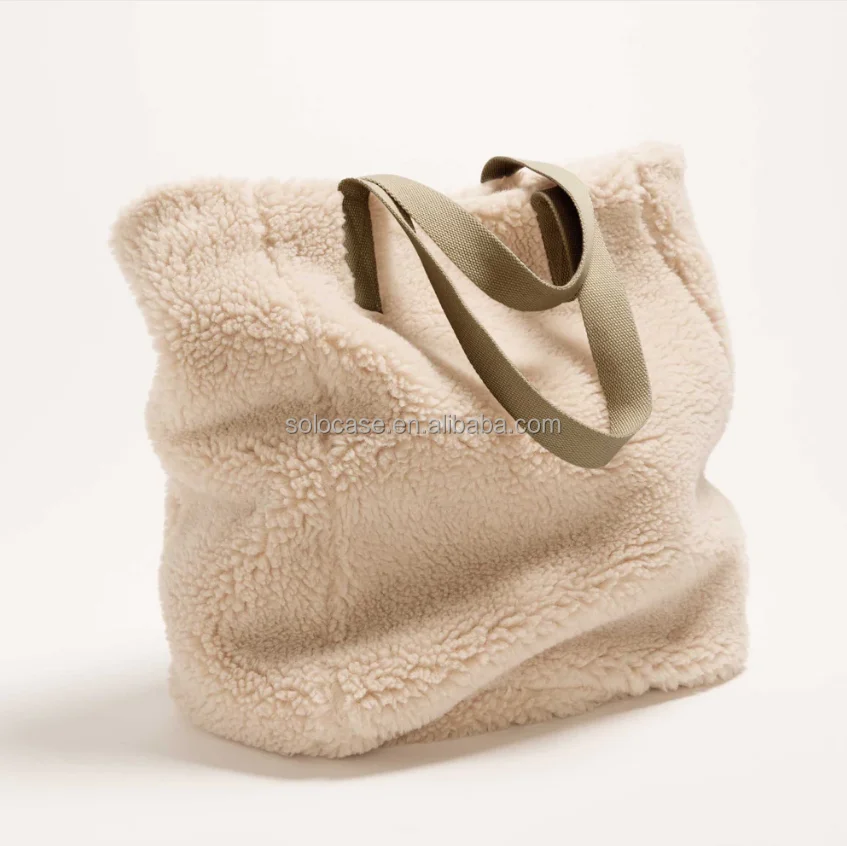 Fashion Sherpa Women Fashion Tote Bag Winter Teddy Plush Texture Tote Bag