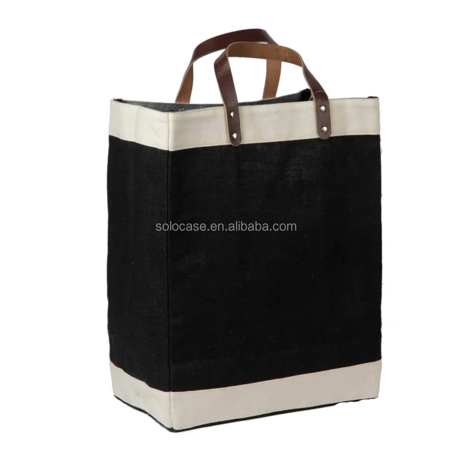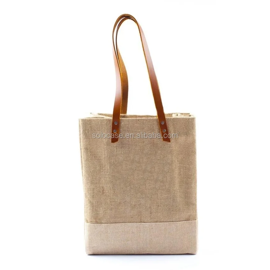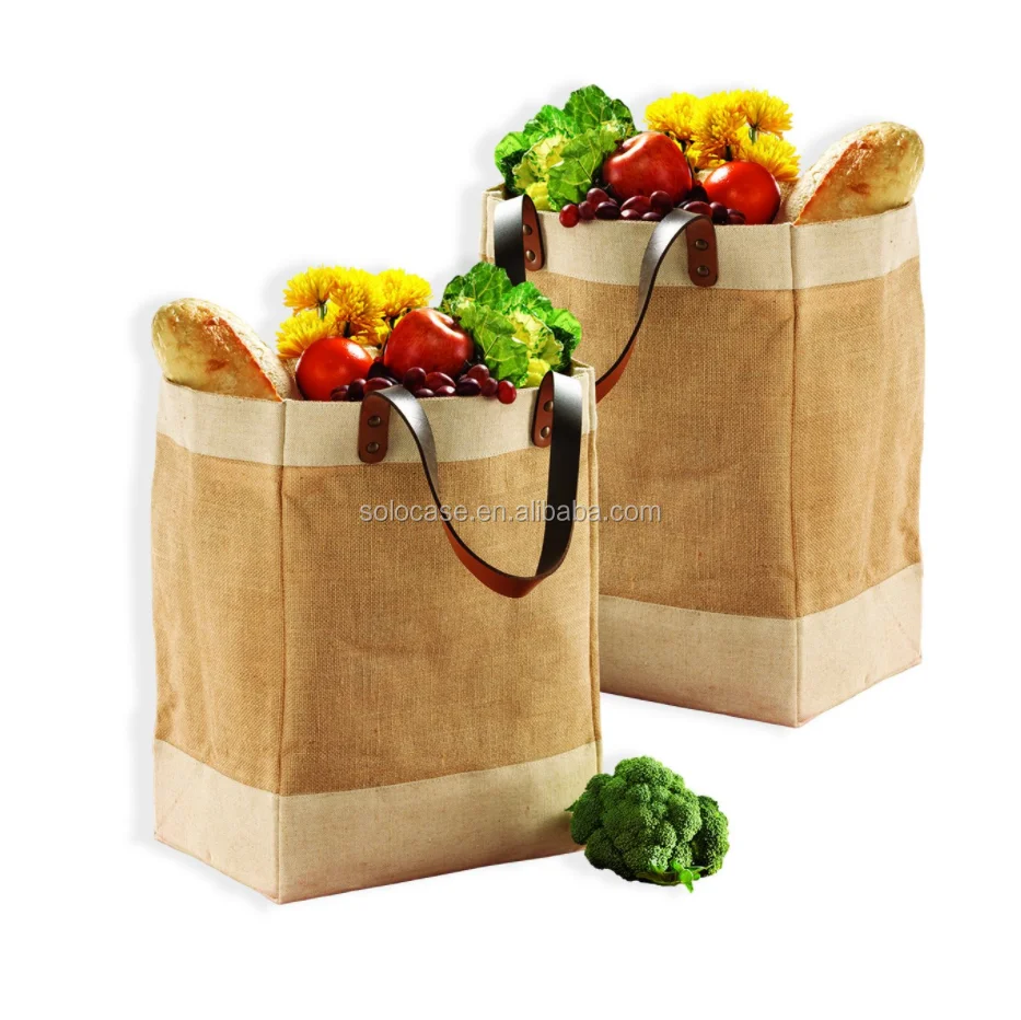 Custom Printed Logo Eco Reusable Burlap Handbag Shopping Jute Tote Bag
