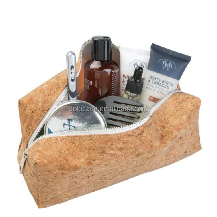 Eco-Friendly Cork and Vegetable Leather Cosmetic Bag with Zipper Case Bound