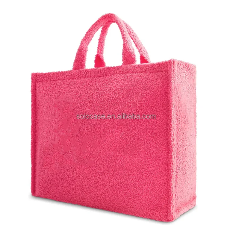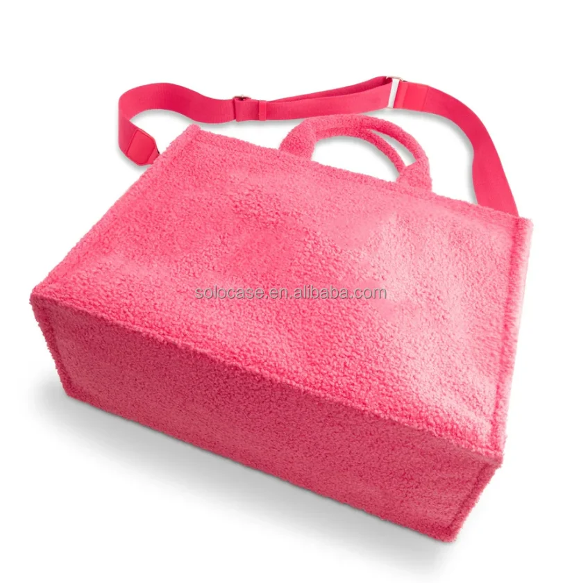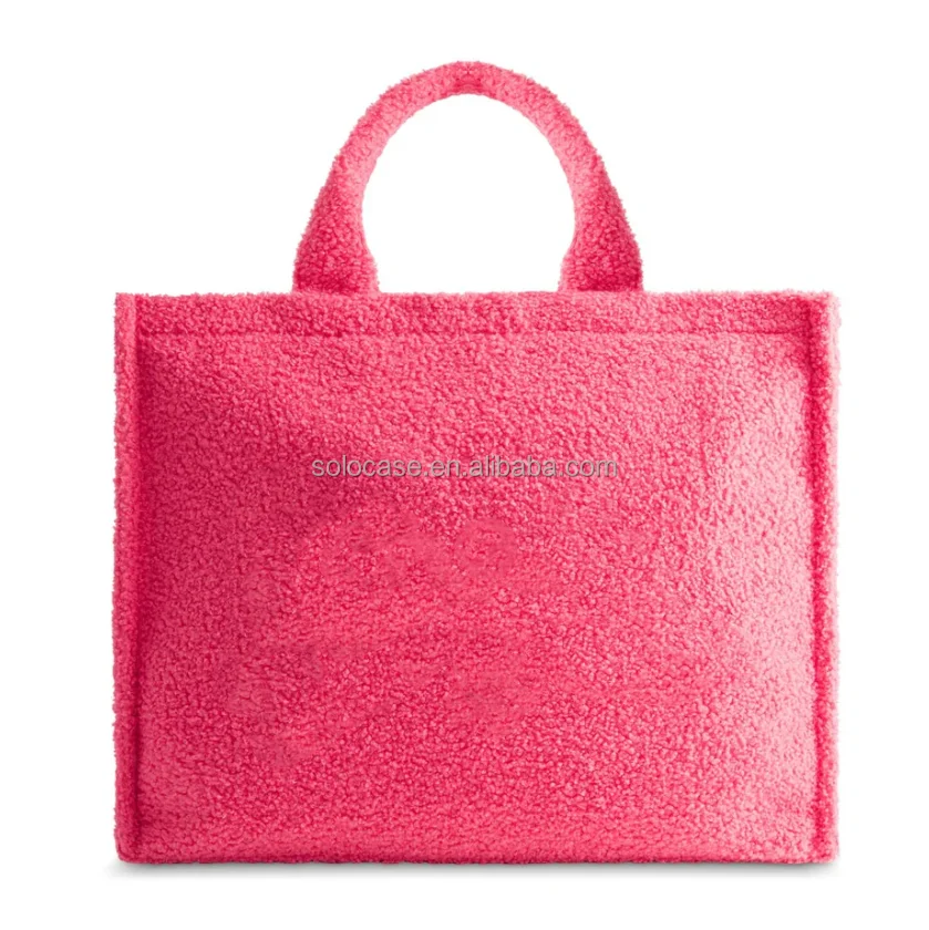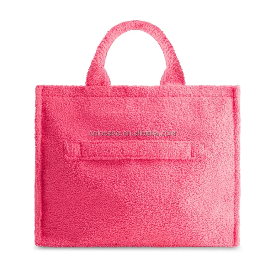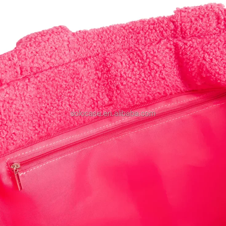 Large Capacity Custom Logo Letter Teddy Tote Bag With Pocket Zipper