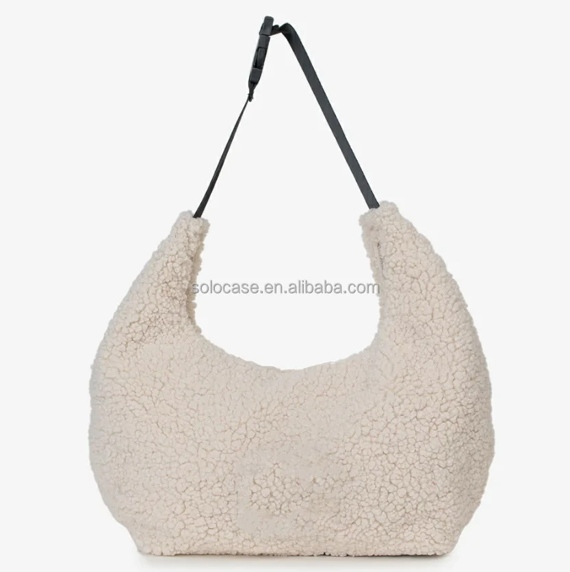 Teddy Hippie Shoulder Sling Crossbody Handbag Sherpa Fabric Crescent Crossbody Hobo Bag