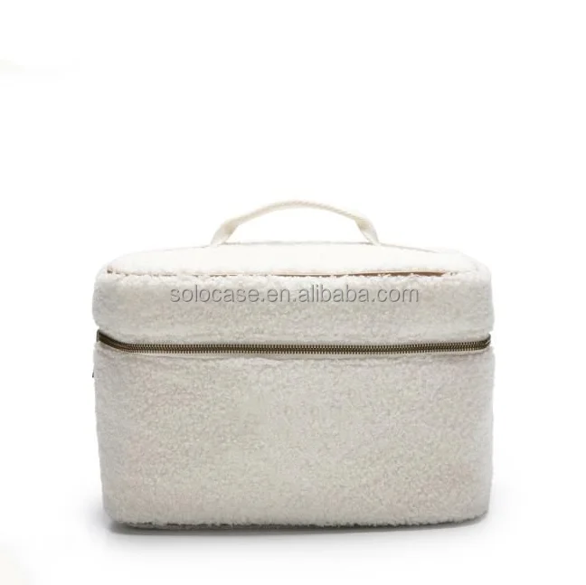 Cute Soft Sherpa Multicolour Cosmetic Bag and Teddy Makeup Bag Lamb Wool Travel Makeup Bag