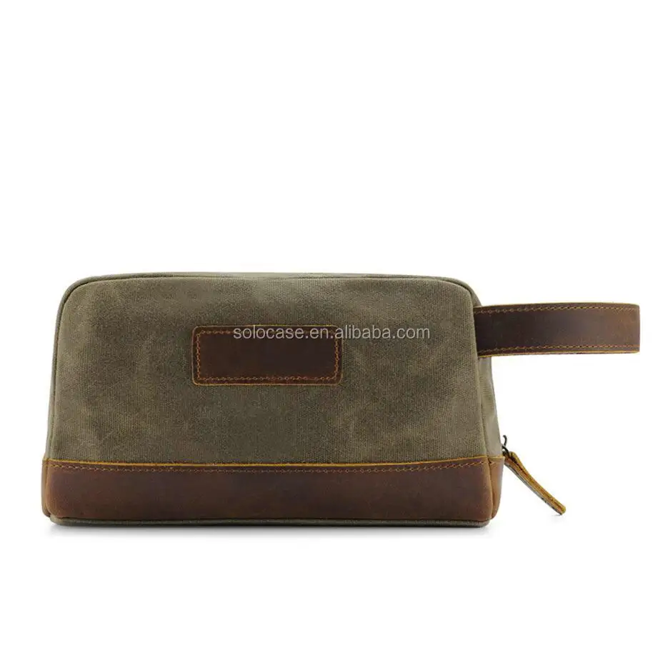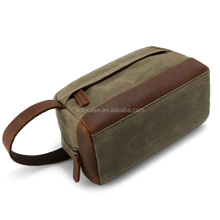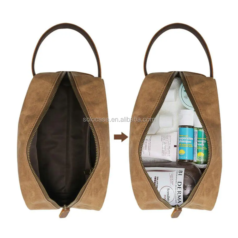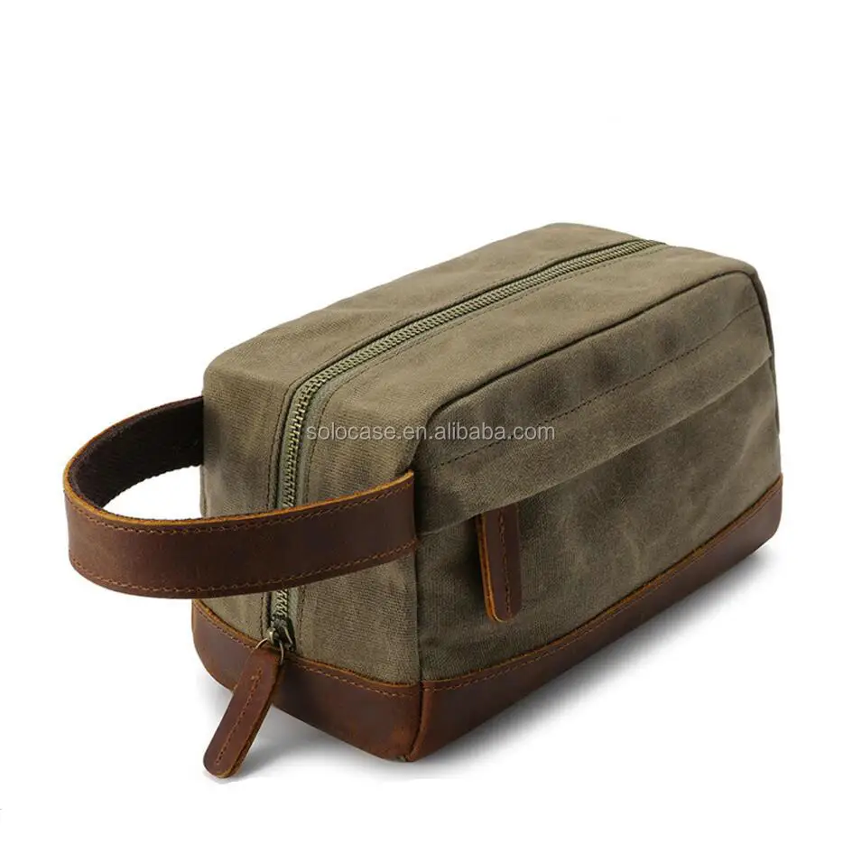 Waxed Cotton Canvas Shave and Toiletries Bag with Leather Handle Cosmetic Bags & Случаи