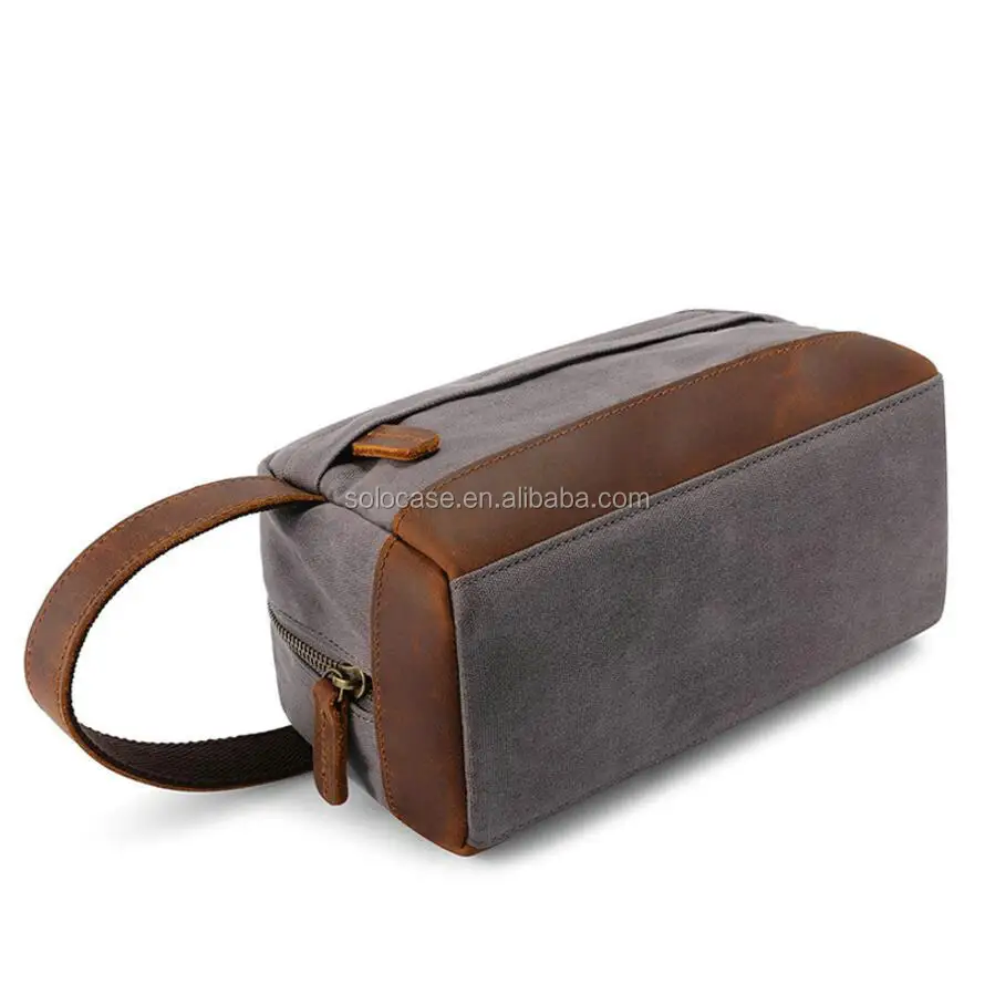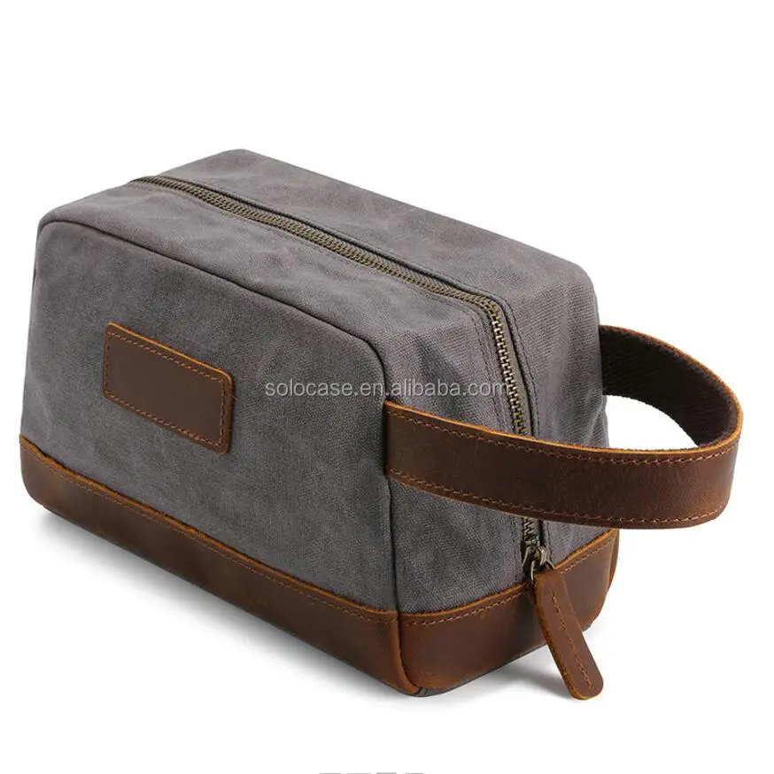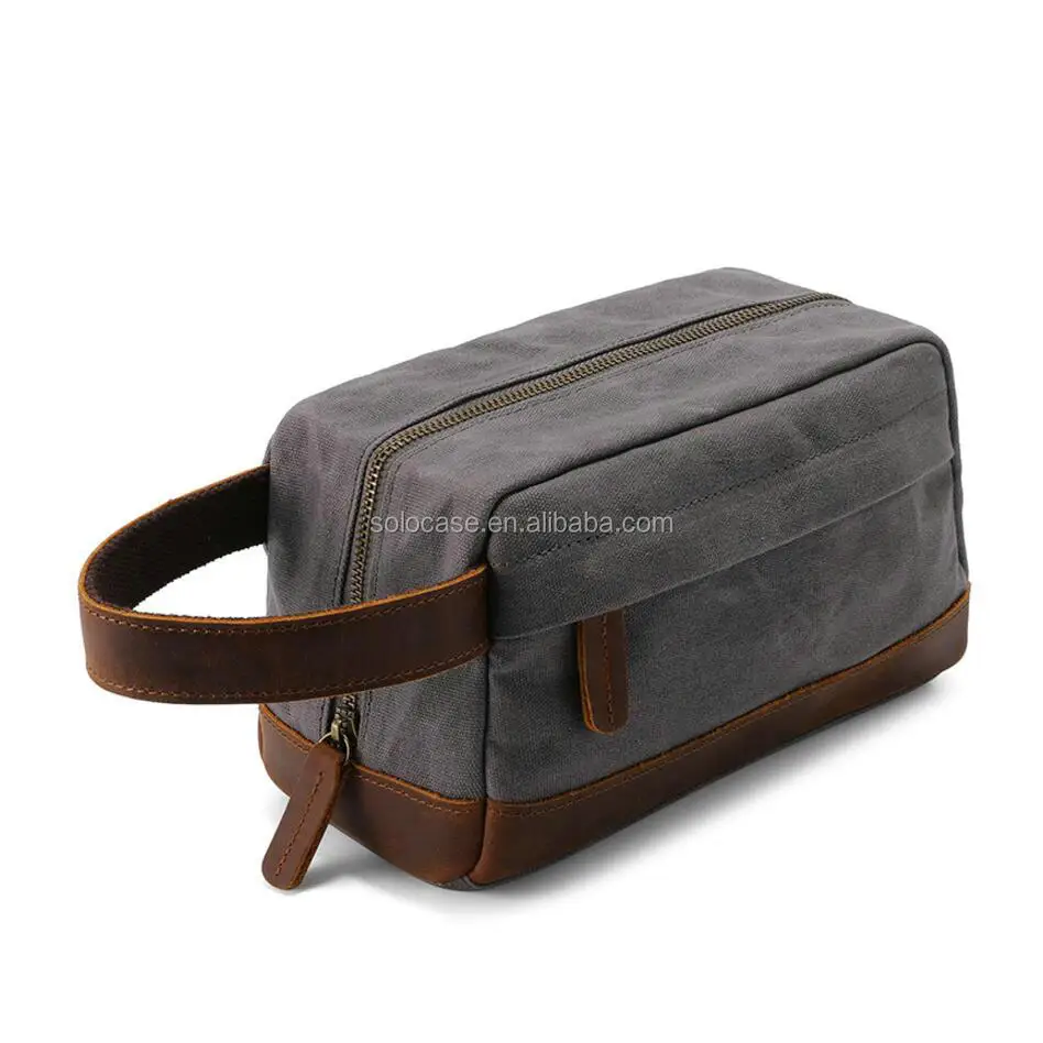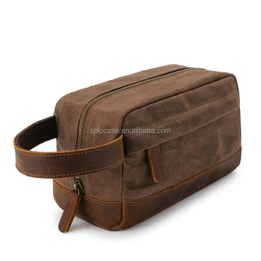 Waxed Cotton Canvas Shave and Toiletries Bag with Leather Handle Cosmetic Bags & Случаи