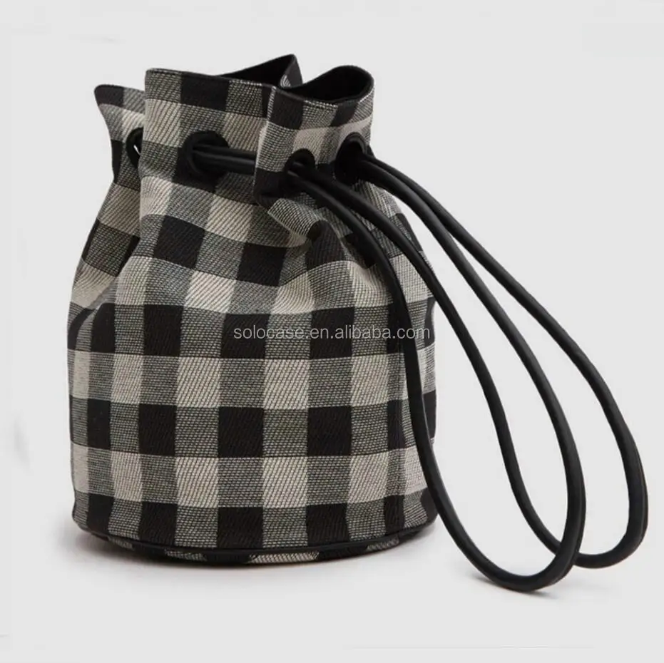 Vegan Leather Rope Drawstring Bucket Bag Stylish Handbag
