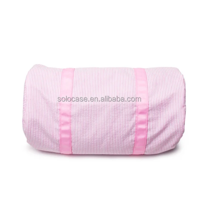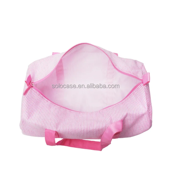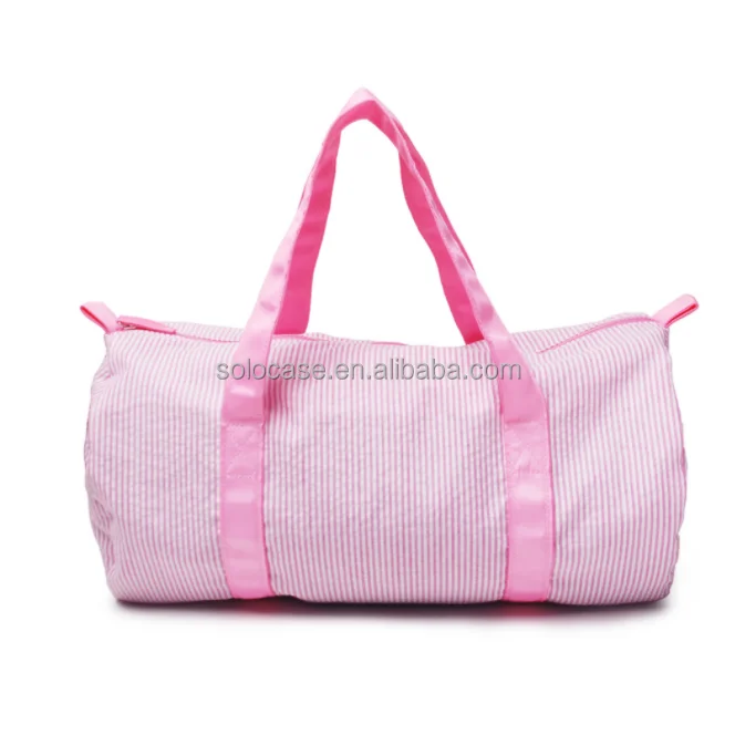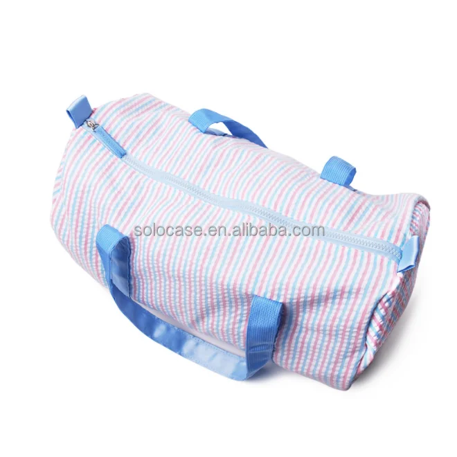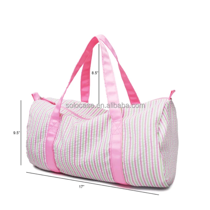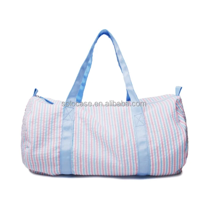 Duffle Bags Large Capacity Monogram Seersucker Stripe Travel Bag With Leather Strap