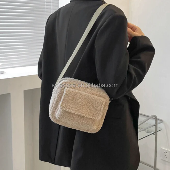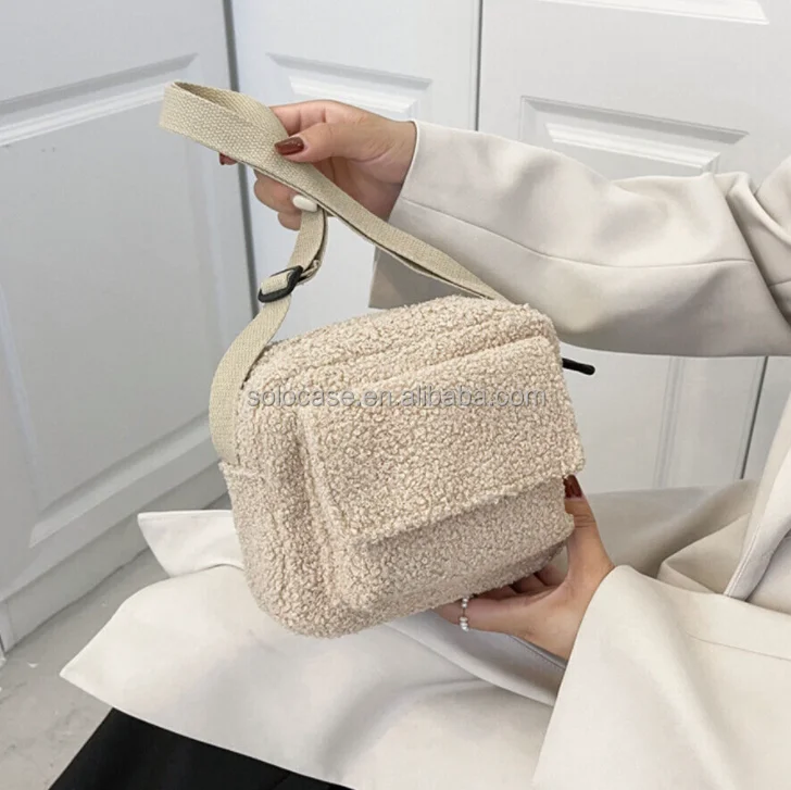 Soft Teddy Shoulder Bag Sherpa Messenger Bag Polyester Crossbody Bag
