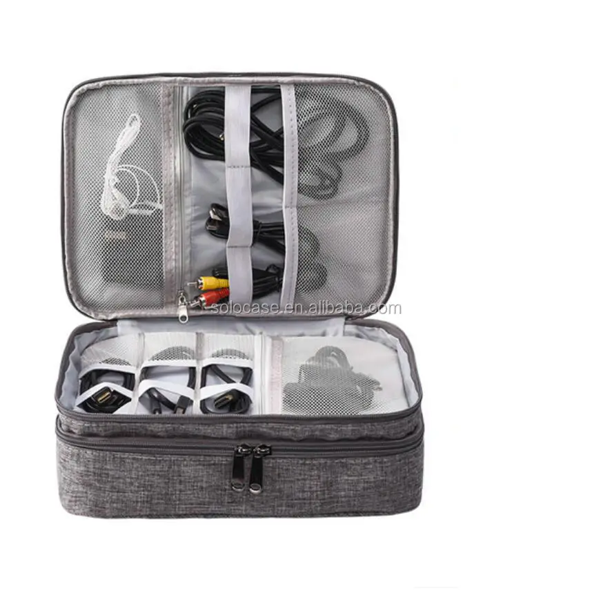 Waterproof Cable Storage Bag for Travel Organization of Charging Cable for Cell Phone or Mini Tablet