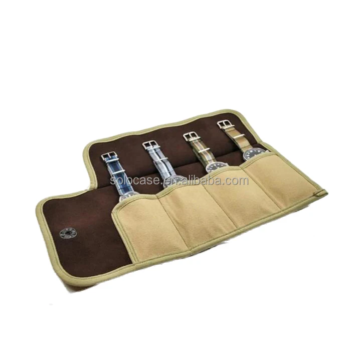 Waterproof Waxed Canvas Travel Watch Roll Organizer Case for 4 Watches